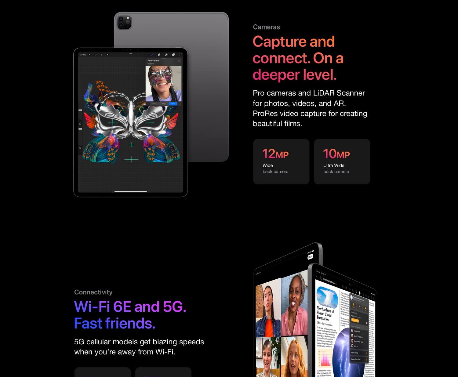 - Brilliant 12.9-inch Liquid Retina XDR display with ProMotion, True Tone, and P3 wide color